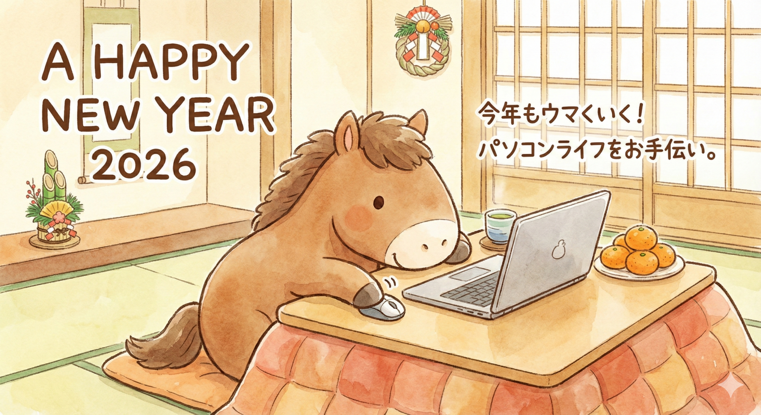 2026年も、皆様のデジタルパートナーとして、より快適な環境づくりをお手伝いさせていただきます。 機器の買い替えやトラブルのご相談、新しいスキルの習得など、本年もどうぞお気軽にご利用ください。